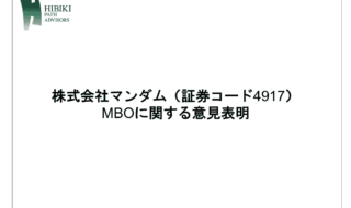 先週金曜日9月26日に株式会社マンダム(以下、「マンダム社」)に対するMBO取引の一環としてのTOB期間が開始されました。 先ずは私どもの、当該MBO取引に関する、「価格が低すぎるのではないか」という問いに関連した…詳細を見る